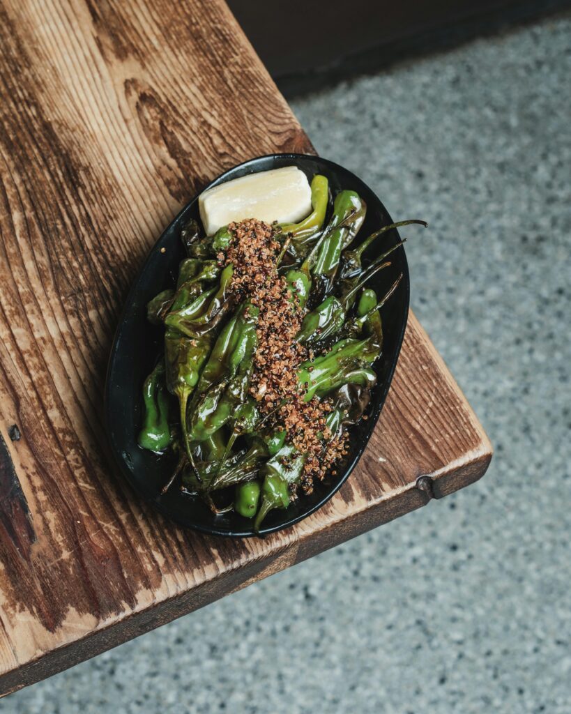 Roasted Shishito Peppers – quick & crowd pleasing….. there’s just something about the mix of crunchy salt, rich oil, and smoky peppers — you can’t stop at just one. These Japanese peppers are pretty mild but every so often a spicy one explodes in your mouth – it’s like playing Russian roulette with every bite. The key to this dish is high heat and quick cooking. What you will need: 8oz shisito pepeprs 2 tbsp. Extra virgin olive oil Coarse kosher salt Heat the oven on Broil setting. Make sure the rack is in the middle of your oven. You want to oven very hot. Place a nonstick skillet in the oven and heat up for 5-6 minutes. Meanwhile, place the peppers in a mixing bowl. Drizzle them with cooking oil and a healthy sprinkle of salt. Use your hands or spoon to evenly coat the peppers with oil. Transfer the peppers to the skillet and cook the peppers until blistered – cook for 5 minutes, give the pan a shake to turn the peppers and cook for another 4-5 minutes. Transfer the peppers to a plate and sprinkle with extra salt: The peppers are best when eaten within minutes of coming off the heat. Enjoy! I paired this delicious dish with a smoky, flinty & lively Domaine Chauveau Sauvignon Blanc from Pouilly Fumé AOC in Loire, France 🇫🇷 the herbaceous character and acidity of the wine makes it a lovely pairing for this appetizer. Expect flavors of green apple, lime, gooseberry, grapefruit, flint, smoke herbal and yellow flowers. Let me know if you have ever tried roasted Shishito peppers.