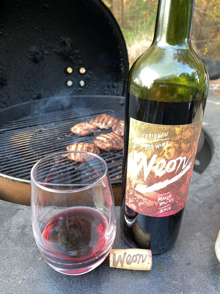 2 lbs. 93% lean ground turkey 1 large egg 1/3 cup instant oats 1 1/2 tsp. dried sage 1/4 tsp. freshly ground nutmeg 2 tbsp. ketchup 1 1/2 tsp. sea salt 1/2 tsp. freshly ground pepper Mix all of the above ingredients in a large bowl till combined. Shake into patties – whatever size you like. 2 lbs of turkey meat generally makes 10 fair size burgers. Refrigerate till ready to grill. Heat the gas or charcoal grill – charcoal in my case – to 350F (medium-high heat). Cook the burgers till done, about 10-15 minutes. Makes approximately 10 burgers. Pair with a Spanish Garnacha or Chilean Carignan.