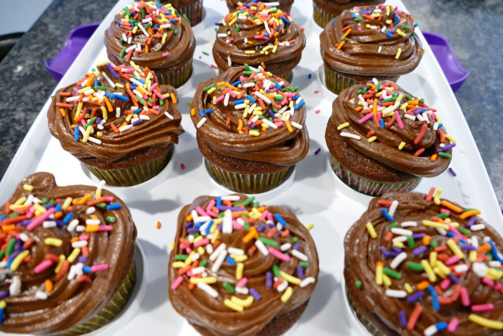 Double Dark Chocolate Cupcakes with Rainbow Sprinkles