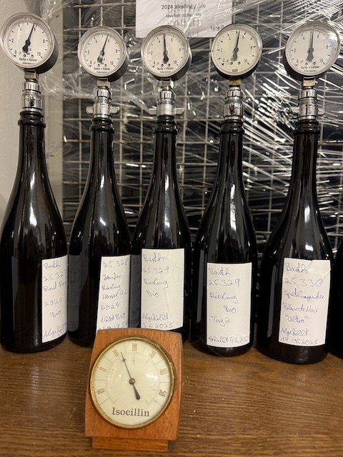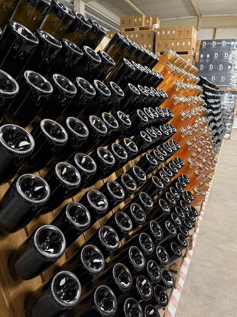 What sets Barth apart is their devotion to Sekt as art. “Sparkling, Family Tradition – Open Minded,” Janna, our host and hospitality representative beamed, encapsulating their ethos. All Sekts are vintage-dated, born from traditional bottle fermentation with extended sur lie aging – the longest now stretching to five years for upcoming Wisselbrunnen Grosse Gewächs releases from 2023. Producing about 60,000 bottles annually, they currently disgorge by hand, riddling on pupitres (some whimsically hand-painted with Picasso-inspired motifs). Next year brings automation to scale their magic without compromise. All sparklings are vintage, but only declared with the single vineyards, much easier from the processing point of view for Barth and their clients.