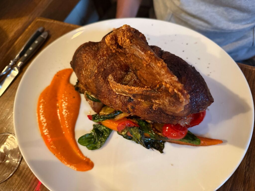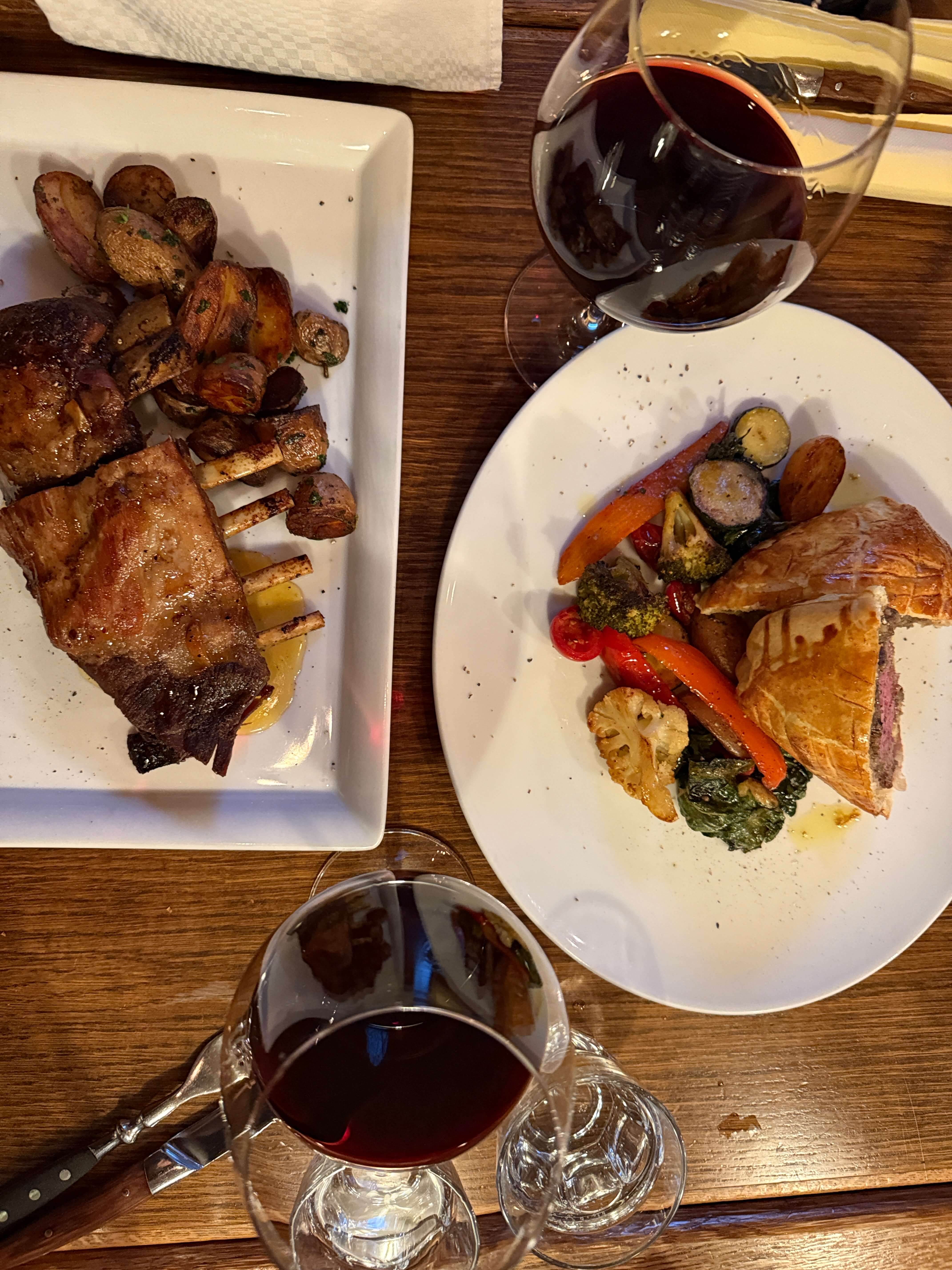 The food is built around fire and time. Csaba’s venison Wellington has achieved minor cult status for good reason: loin from wild red deer, seared, coated in forest-mushroom duxelles, wrapped in feather-light pastry and baked to a lacquered rose. Cut the dome and the juices run like a Bordelaise reduction having an identity crisis (in the best way).