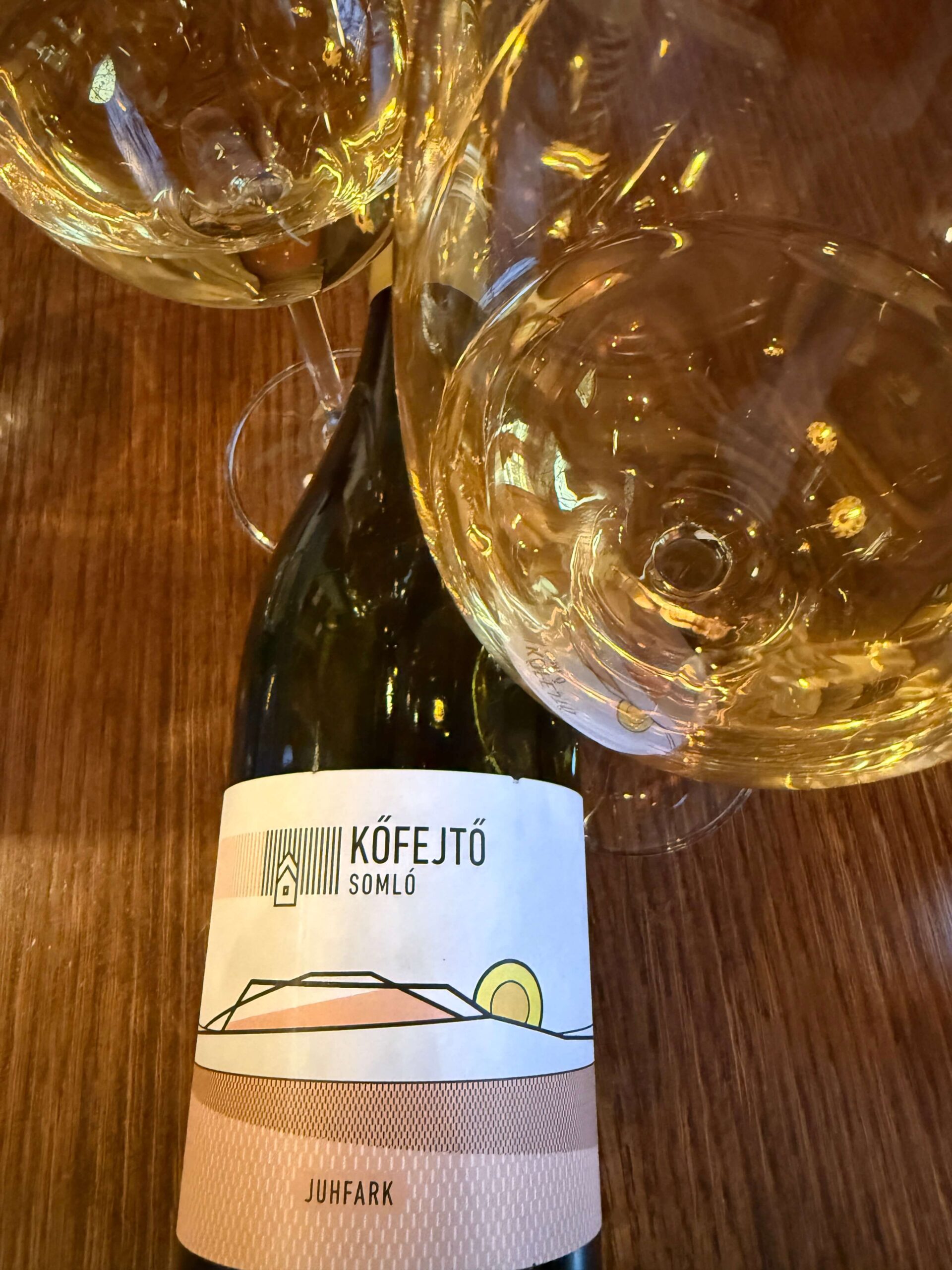 - Kófejtő Cuvée from Somló: a field blend dominated by Juhfark with whispers of Hárs and Furmint, fermented and aged in old wood. Volcanic tension, gunflint, preserved lemon, white peach pit, and a saline thrust that screams for fatty meat. Textbook Somló electricity.