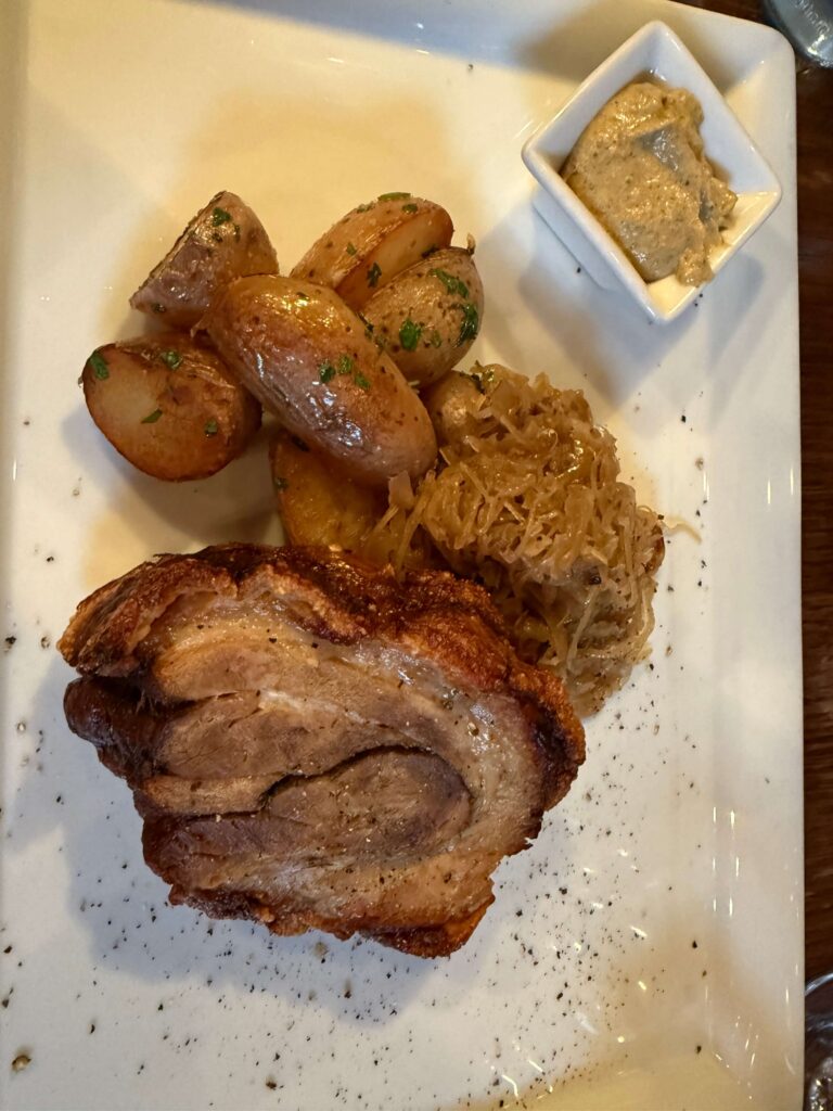 The half duck is the dish we will still be dreaming about in ten years: confit legs pressed and re-crisped, breast roasted on the crown until the skin shatters like stained glass and the flesh remains obscenely juicy. Served with duck-fat potatoes and braised red cabbage sharpened with aged szamorodni vinegar. The Kófejtő from Somló cuts through the richness like a stiletto.