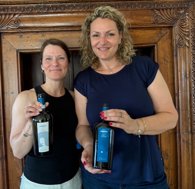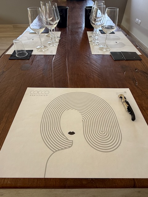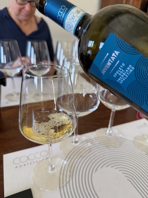 The labels themselves are a work of art, reflecting Ilaria’s creative spirit. Inspired by a digital thumbprint that morphs into flowing hair, they add a “woman’s touch” without being overt. “I wanted to give a feminine essence to the wine,” Ilaria explained during our chat, “but not by putting a literal woman on the label.” The names—Avventata (impulsive, like wind-swept hair) for her lively Trebbiano Spoletino and Ponderata (thoughtful) for its more contemplative skin-contact version—play on Italian words that mirror the wines’ personalities. Even the red wines draw from historical roots: Camorata for Rosso di Montefalco, Fonsano for Sagrantino (evoking a local spring), and Fontiola for the Passito.