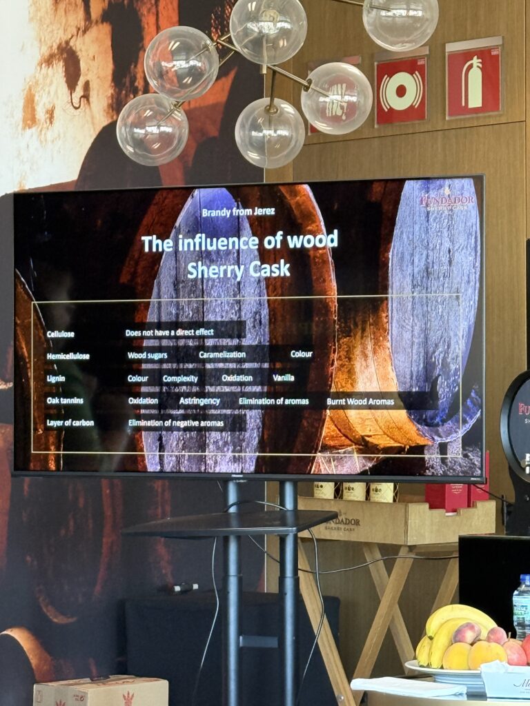 We began our journey at the Torre Emperador Castellana, the tallest building in Madrid with a masterclass on the Harvey’s and Fundador portfolio, led by the enthusiastic and knowledgeable Livinia Stuyck (Head of Consumer Marketing Emperador Group) and Alberto Pizarro (Trade Ambassador, Emperador Group). Livinia shared insights into the rich history of Grupo Emperador, emphasizing the subtle yet vital differences between sherry and brandy — both in production and flavor profile. While they often share aging casks, sherry is a fortified wine, and brandy is distilled, each with its unique character shaped by factors like grape variety, aging, and oxidation.