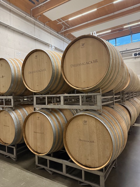 At Dreissigacker, the mantra is clear: prioritize quality to build a lasting brand. Jochen, alongside Cellar Master Achim, as Jochen is closely involved in the blending process orchestrating their range of wines like a conductor of a symphony. During harvest, a team of 10 specialists handles everything from sugar measurements to pressing, while year-round, just three core staff maintain the cellar’s rhythm.