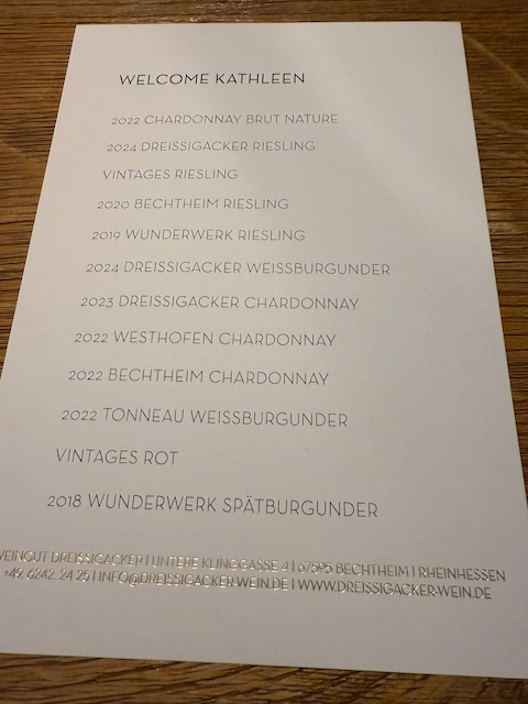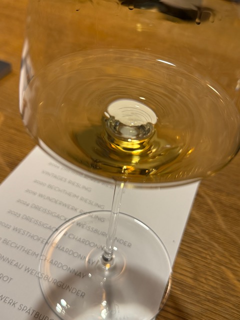 The highlight of the tour was the tasting lineup, where Dreissigacker’s elegant, mineral-laced style shone through. Each wine told a story of terroir, craftsmanship, and patience. Here’s what stood out: