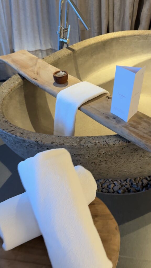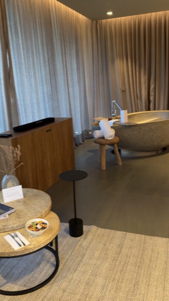 Ana herself guided us through the hotel’s three vertical pillars—Wellness, Wine, and Art—revealing how the Tree of Life is more than sculpture; it’s the blueprint. Each of the seven suites corresponds to one of the painting’s seven symbolic elements: earth, water, fire, air, root, trunk, and crown. From the grounding clay tones of Templo (earth) to the ethereal skylights of Corona (crown), every space is a chapter in the same living story.