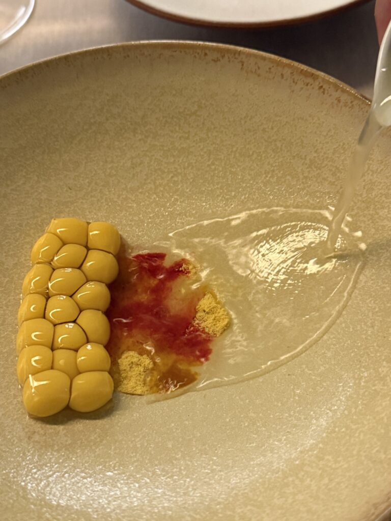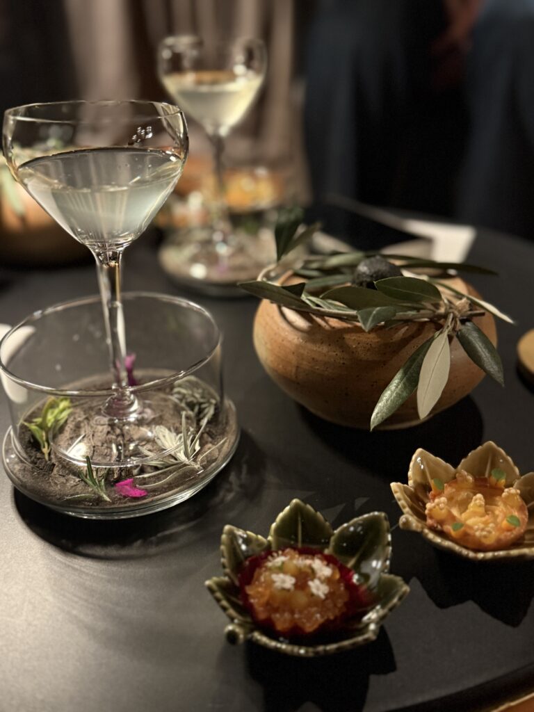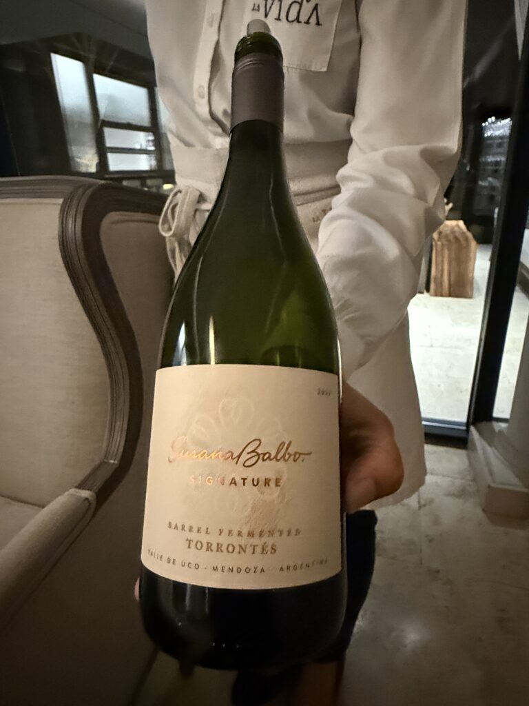 Our evening ignited with Ana’s welcome ritual: a signature cocktail served fireside surrounded by other Mendozian works of art in the cocktail bar. Picture this—grappa infused with clarified butter, toasted hazelnuts, and poached pears, shaken over ice and strained into a chilled coupe. The nose? Warm pastry and orchard fruit. The sip? Silky, nutty, with a whisper of pear sweetness and a clean, spirit-driven finish. It wasn’t just a drink—it was a preview of Mendoza’s soul: bold, layered, unexpectedly refined. One sip, and the Andes felt closer.