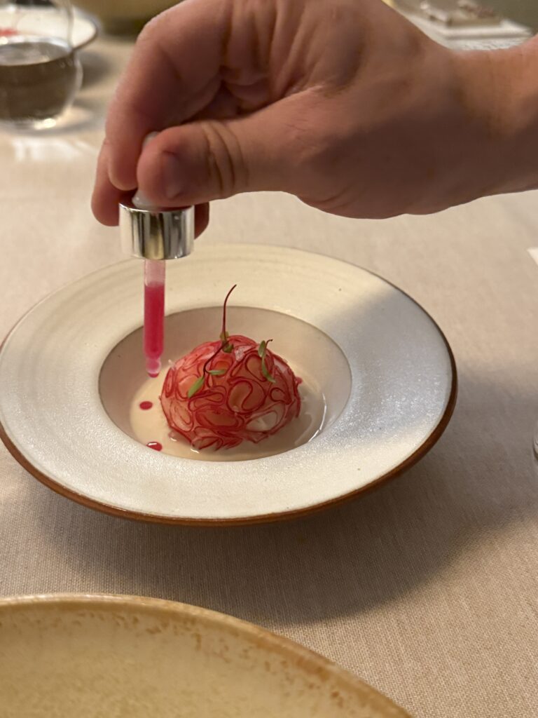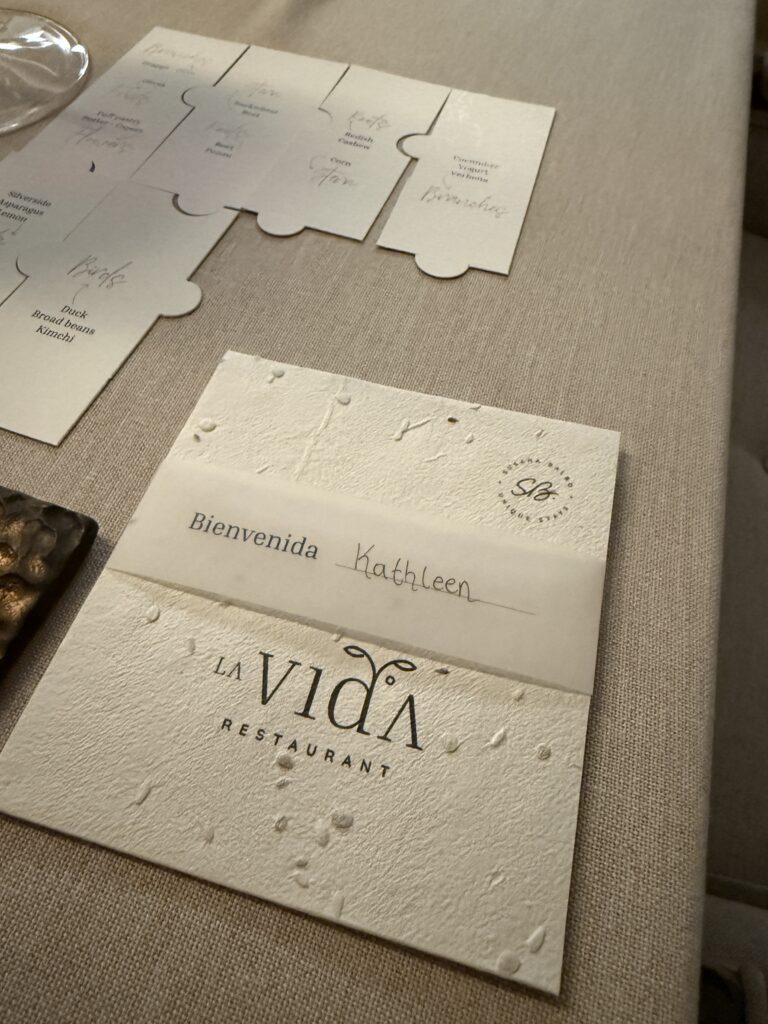 Dining here is a revelation, helmed by Mendoza-born wunderkind executive chef, Flavia Amad Di Leo—a Michelin-apprenticed force (stages with Anthony Bourdain and Daniel Boulud, New York stardom under her belt). At La Vida, the in-house restaurant, Flavia reinvents regional lore with local, organic bounty: bold, flame-kissed plates that marry molecular wizardry to Andean heart. Chef Flavia’s magical 7-course Tree of Life tasting menu paired with Susana’s curated wines. Throughout the meal, we pieced together puzzle cards revealing ingredients tied to each element of the tree – Roots with redish, cashew, corn, beet, and ponzu; Stem featuring buckwheat and beet; Fruits layering puff pastry with butter-capers, lemon mirin olive, bitter cocoa raspberry, and a cheese & artisanal sweets cart were some of the courses. Flavia’s flavors telling Mendoza’s story, one element at a time. By the finale, we assembled a double-sided image: one side, the full menu in elegant calligraphy; the other, a photographic replica of the Tree of Life, physical manifestation of the evening’s narrative for us to keep.