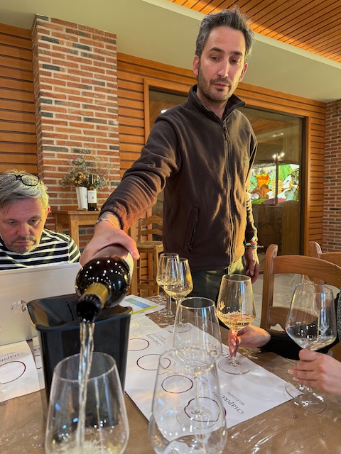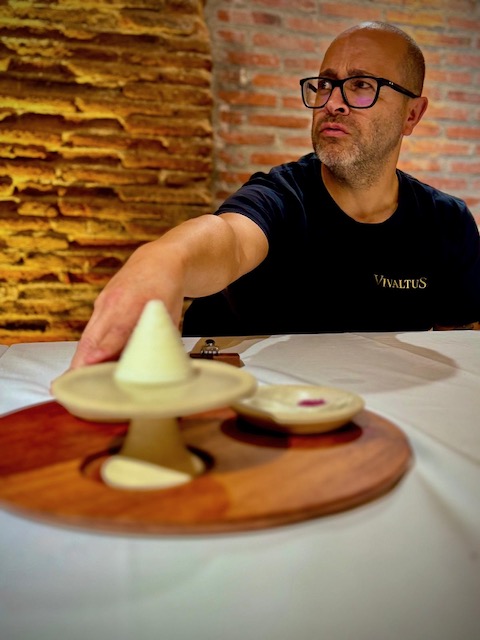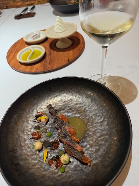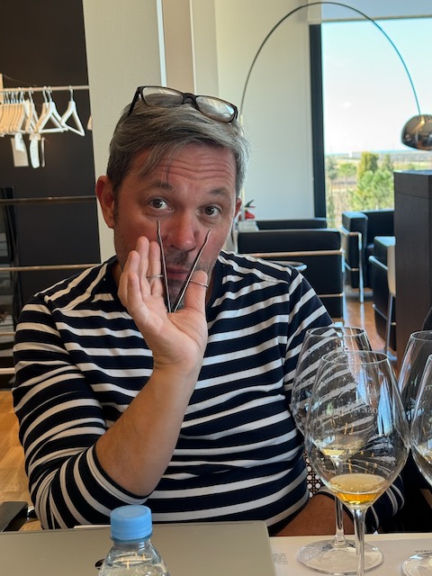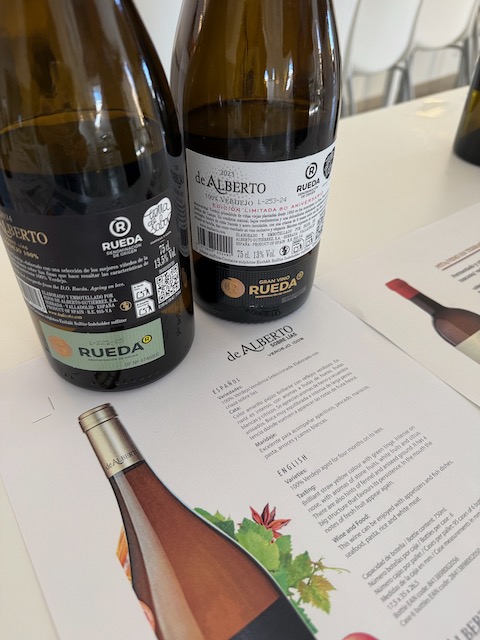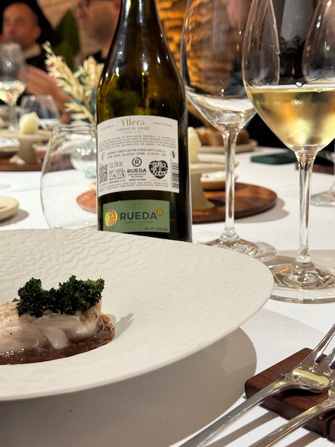 At midday lunch was pure magic at Bodegas Yllera’s Restaurante Arrope in Rueda. Our gracious host was Ramón Martínez Matute, the brilliant winemaker of Bodegas Yllera, recently voted Winemaker of the Year by Tim Atkins, MW. With passion and precision, Ramón continues to elevate the family’s historic estate while pushing the boundaries of Verdejo’s potential. The estate sits right in Rueda and is world-famous for its breathtaking underground cellars and cave labyrinth dating back to the 15th–16th centuries—one of the best-preserved in Spain. Winemaking here honors tradition while embracing innovation: fresh stainless-steel Verdejos, lees-aged expressions, traditional-method sparkling, and even a few reds and rosés. The historic cellars double as the stunning setting for Restaurante Arrope (Av. Mariano Ruiz Rodríguez, 1), where we savored refined dishes perfectly matched to local wines. Two bottles truly shone: the Meraldís 2022 Gran Vino de Rueda delivered pure sophistication — silky and profound with candied lemon zest, toasted hazelnut, white blossom and a long, saline, mineral-driven finish that showcased serious class and aging potential. The Yllera 2025 Vendimia Nocturna Verdejo Sobre Lías shone brightly with vibrant peach, green almond, creamy lees texture and electric, mouthwatering acidity that kept it fresh and utterly moreish. Bliss!