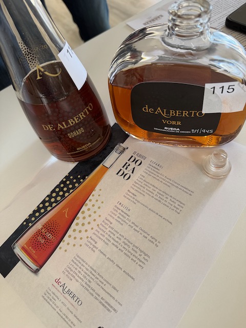 Our small group of judges kicked off the morning with arrival at the Consejo Regulador D.O. Rueda. A warm welcome, an insightful presentation on the region, and a focused tasting of a stellar selection of Rueda wines set the tone—fresh, informative, and utterly inspiring. We were then left to our own devices to taste 40 wines of various styles from fresh and lively to aged, oxidative, sweet and VORR. There were a few sprinklings of Sauvignon Blanc and Palomino Fino in the mix but, as the region dictates, Verdejo is the clear queen of the region. A handful stood out and absolutely stole the show: Bodegas Pandora Verdejo Ecológico 2025 burst with vibrant green-apple crunch and zesty lime; Diez Siglos de Verdejo 2025 delivered bright citrus fireworks laced with almond and saline minerality; Bodegas de Alberto Sobre Lías 2024 wrapped us in creamy toasted-nut richness with lingering peach; Bodegas Naia Verdejo 2022 offered elegant fennel and white-flower finesse; Rodríguez y Sanzo Palo Norte brought smoky herbal depth with electric tension; the historic Feliz Lorenzo Cachazo de Alberto Dorado showed golden oxidative nuttiness; its Dorado Dulce version was pure honeyed apricot bliss; and the rare Dorado VORR delivered profound, concentrated dried-fruit complexity that lingered forever. The Dorado VORR recently received the regions first ever 100 points rating from Tim Atkins, MW.