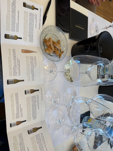 Later that morning we were in La Seca at Bodegas José Pariente, a family-owned gem founded in 1998 by Victoria Pariente to honor her late father José, a passionate vine grower and winemaker since the 1960s. Now in its third generation, the winery is led by Victoria’s children: Martina Prieto Pariente (winemaker and CEO) and Ignacio Prieto Pariente (export manager), who was our gracious host for the event. Located between Rueda and La Seca, this pioneering estate focuses exclusively on high-quality Verdejo and Sauvignon Blanc, with a strong emphasis on proving the grape’s aging potential. Their winemaking practices blend modern precision—stainless steel with extended lees aging, some cement eggs, and selective oak for barrel-fermented cuvées—with deep respect for terroir and single-vineyard plots (including century-old vines like Finca Las Comas, planted around 1910). Varieties are primarily Verdejo (with Sauvignon Blanc for specialty wines). Ignacio led us through the family’s history, cellar tour and to the best part, the tasting.