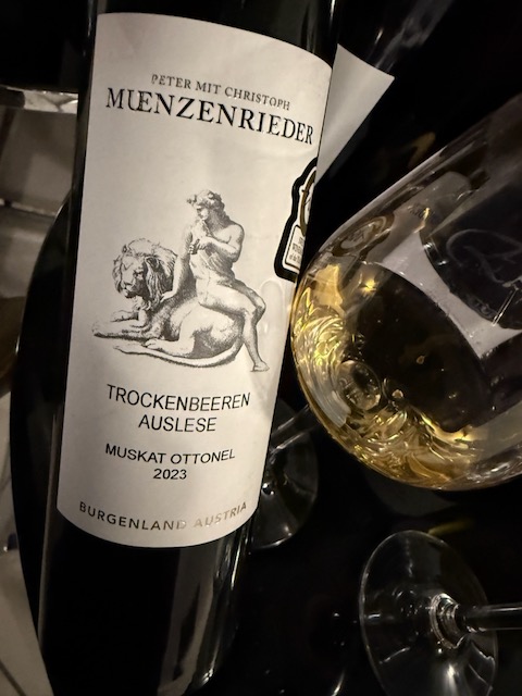Münzenrieder Muskat Auslese 2023: Dried stone fruit, piercing acidity, and a salty thread that keeps it gorgeously fresh. Botrytis sweetness done with Styrian precision – not cloying, just addictive.